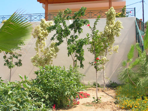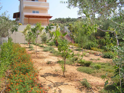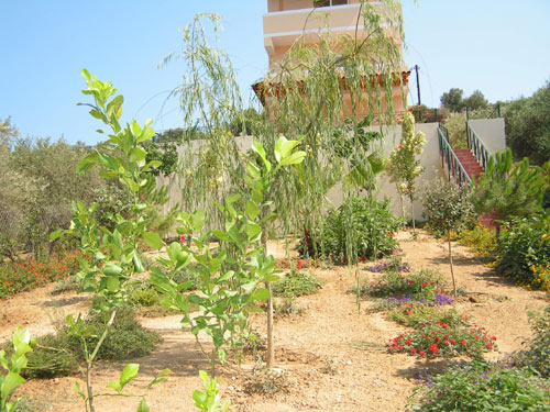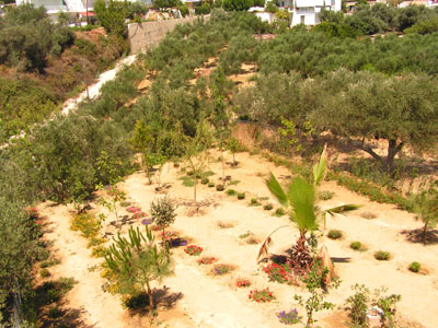 Ποικιλία από πορτοκαλιές, λεμονιές,  ελιές, βερικοκιές , μπανανιές, άνθη
